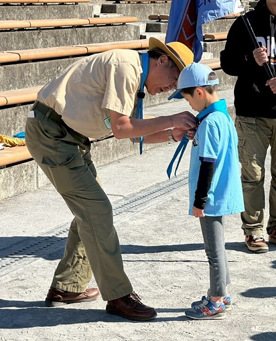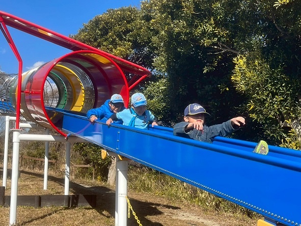 2026年2月1日(日)晴れ横浜こどもの国「ツールドセブン(サイクリング)」今日の活動は、横浜にある”こどもの国”まで行って、、ビーバー隊の入隊式を行ってから、サイクリング、、コースの登りがきつかったかな?。そのあとは、歩いて吊り橋を渡り、、お弁当を食べて、無名戦士のスカウト像、レリーフと碑文のプレートを皆で拭き掃除して綺麗にしました。最後はなんと全長115mもあるというローラー滑り台で大はしゃぎ!。お尻が痛くなった!?。